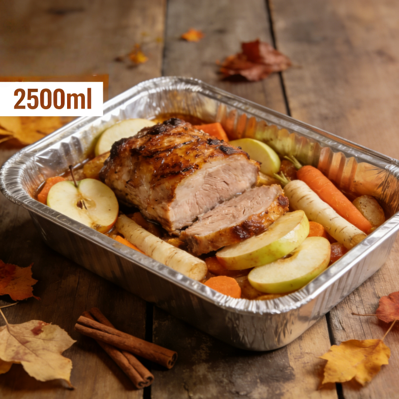 2500ml Large Aluminum Foil Container – Family Feast SizeLarge rectangular container for family meals, parties, and catering – oven & microwave safe, stackable, recyclableProduct Ov