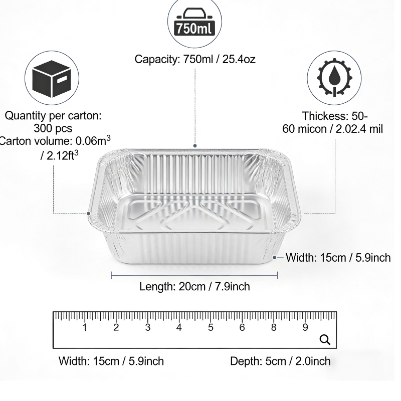 Manufactured in our ISO-certified factory, each 750ml square container is made from high-quality food-grade aluminum (8011/3003 alloy). The smooth rolled rim ensures safe handling without sharp edges, while the rigid construction maintains its shape even with heavy or saucy foods. Our containers are produced under strict quality control, ensuring consistent thickness and performance.