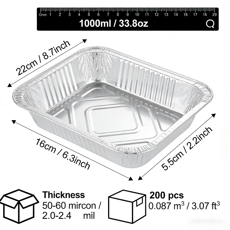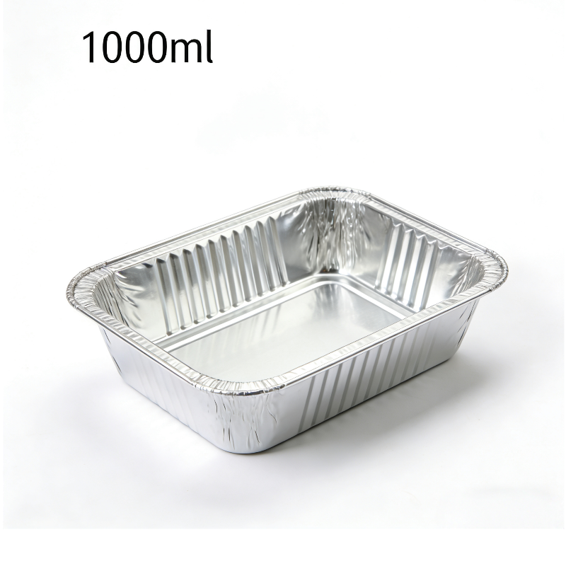 1000ml square aluminum foil container, large capacity disposable foil box, food grade aluminum foil tray, oven safe catering container, recyclable food packaging, leak-proof foil food box, takeaway food container