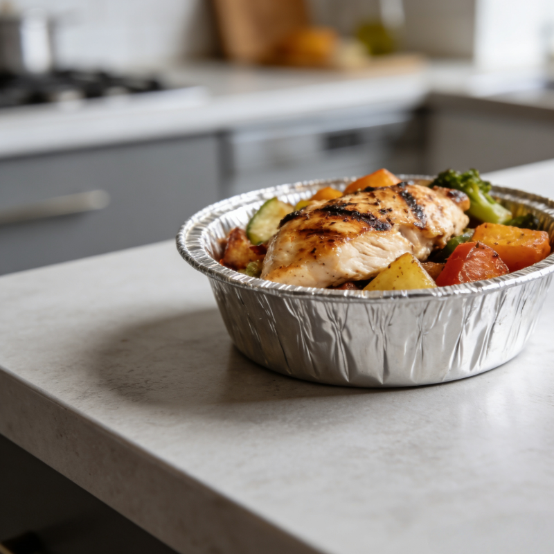 Manufactured in our ISO-certified factory, each 300ml round container is made from high-quality food-grade aluminum (8011/3003 alloy). The smooth rolled rim ensures safe handling without sharp edges, while the rigid construction maintains its shape even with heavy or liquid foods. Our containers are produced under strict quality control, ensuring consistent thickness and performance.