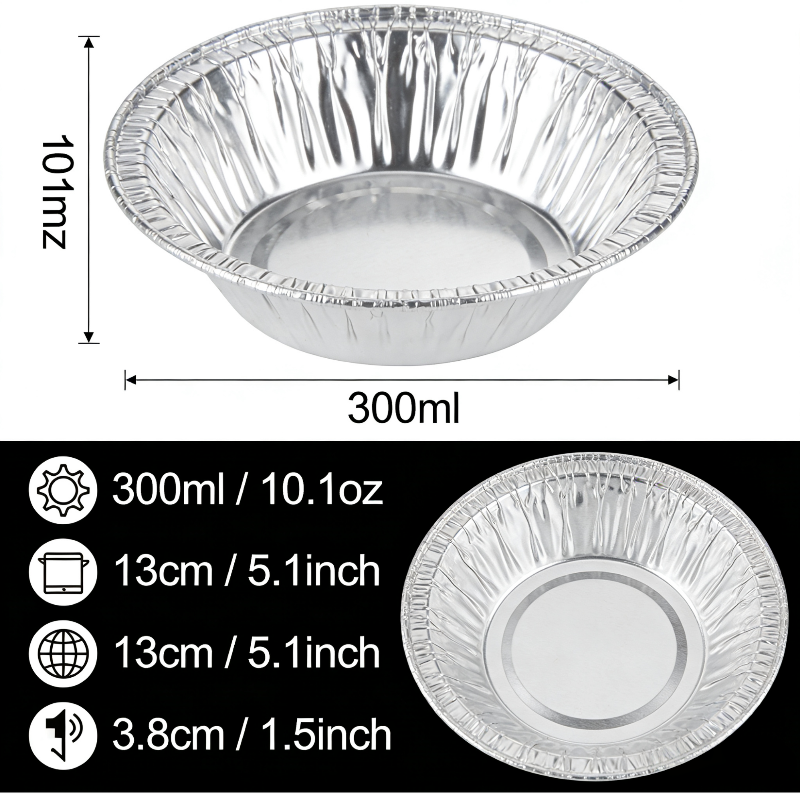 300ml Round Aluminum Foil Container – Food Grade, Leak ResistantMedium round container for single portions – oven & microwave safe, stackable, 100% recyclableProduct OverviewOur 30