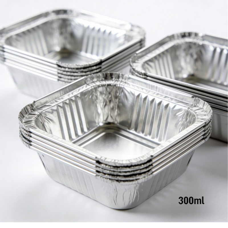 Manufactured in our ISO-certified factory, each 300ml square container is made from high-quality food-grade aluminum (8011/3003 alloy). The smooth rolled rim ensures safe handling without sharp edges, while the rigid construction maintains its shape even with heavy foods. Our containers are produced under strict quality control, ensuring consistent thickness and performance.