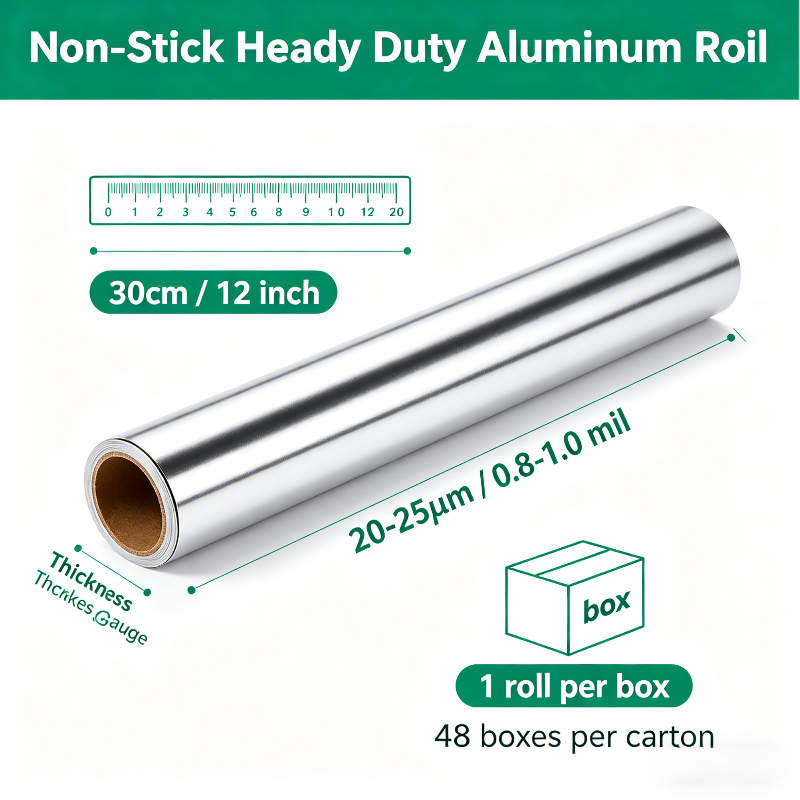 Non-Stick Heavy Duty Aluminum Foil – 30cm x 15m (12" x 50ft)Heavy duty non-stick aluminum foil roll for grilling, baking, and roasting – food safe, puncture resistant, easy-te